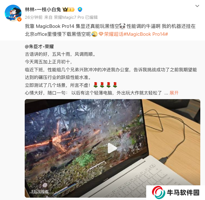 本站注意到,榮耀中國區(qū)副總裁、智慧生活業(yè)務(wù)部部長林林今日轉(zhuǎn)發(fā)了該視頻,并透露了新品部分細(xì)節(jié):新筆記本命名為 MagicBook Pro 14,預(yù)計為集顯本。