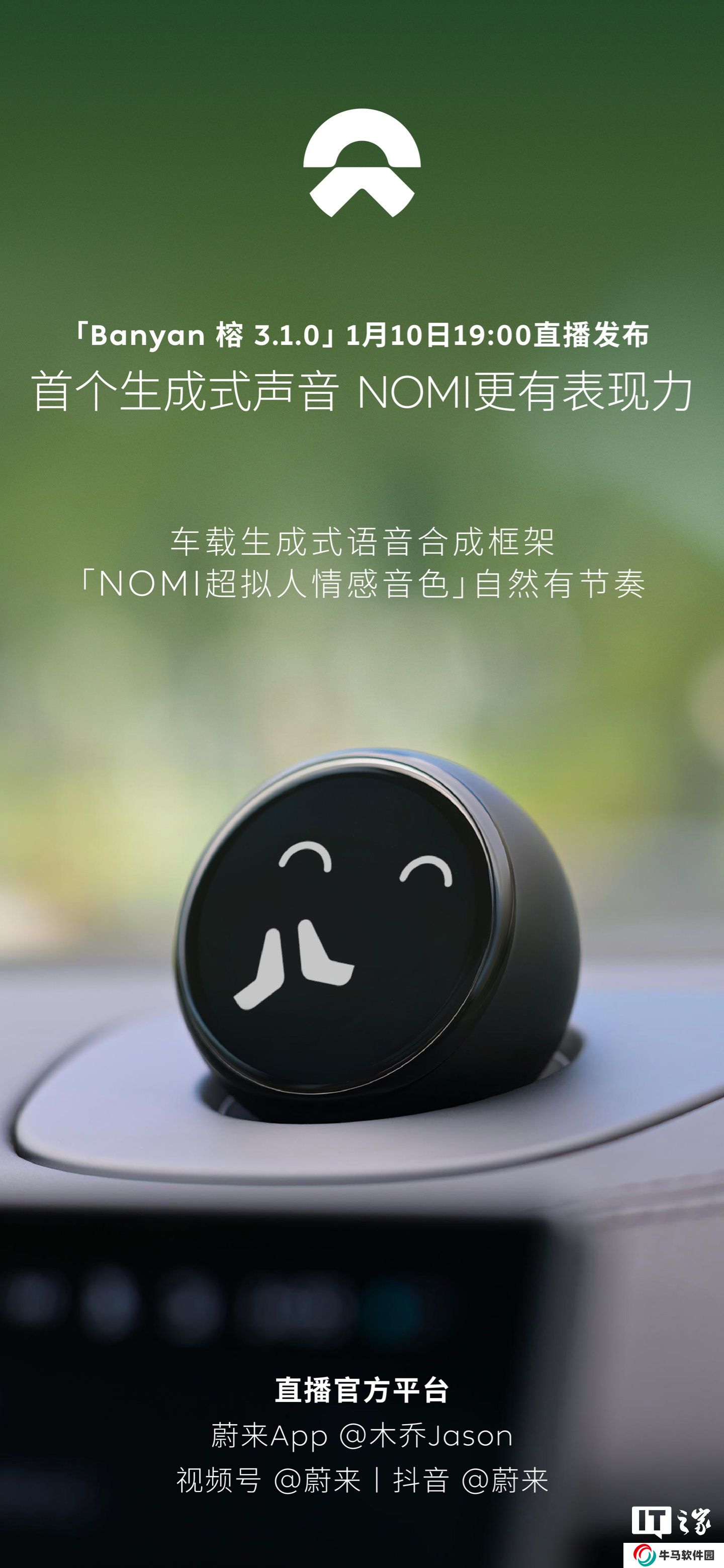 本站 1 月 9 日消息,蔚來官方今日發(fā)文宣布,蔚來智能系統(tǒng)「Banyan 榕 3.1.0」版本將于 1 月 10 日(明日) 19:00 直播發(fā)布,將提供超百項功能新增及優(yōu)化。