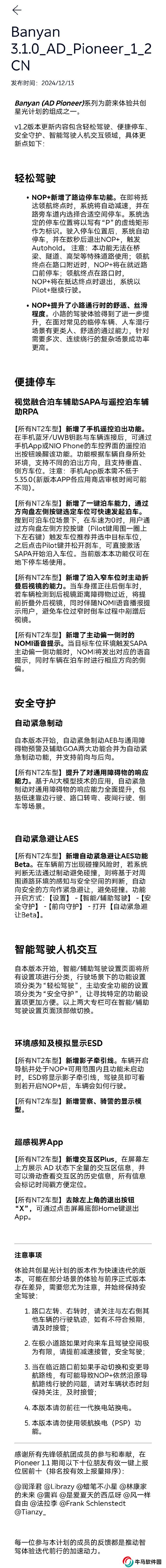 據(jù)本站此前報道,蔚來測試中的 Banyan 3.1.0 AD 星光版更新內(nèi)容已于去年 12 月被多名博主曝光,具體更新點如下: