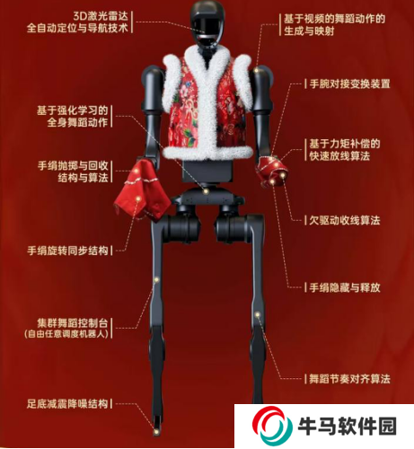 據(jù)宇樹(shù)科技官方透露,本次春晚舞臺(tái)的扭秧歌舞蹈,是基于視頻的舞蹈動(dòng)作的生成與映射,靠 AI 訓(xùn)練來(lái)執(zhí)行。每一個(gè)人形機(jī)器人均配備了 16 臺(tái) H1 激光 SLAM 定位,可以全自動(dòng)走位變隊(duì)形。由于拋手絹結(jié)構(gòu)復(fù)雜,因此手腕對(duì)接變換裝置,同時(shí)加入了基于力矩補(bǔ)償?shù)目焖俜啪€算法,以及欠驅(qū)動(dòng)收線算法,還有手絹拋擲與回收結(jié)構(gòu)與算法,手絹旋轉(zhuǎn)同步結(jié)構(gòu)等,實(shí)現(xiàn)了這場(chǎng)零失誤的春晚“秧歌舞”。