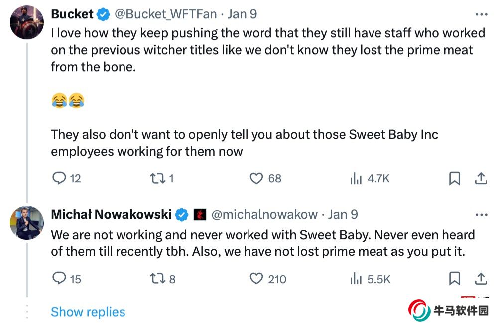 感謝本站網(wǎng)友 Koopa_X 的線索投遞! 本站 1 月 12 日消息,CDPR 聯(lián)合首席執(zhí)行官 Michal Nowakowski 在X平臺(tái)回復(fù)玩家評(píng)論