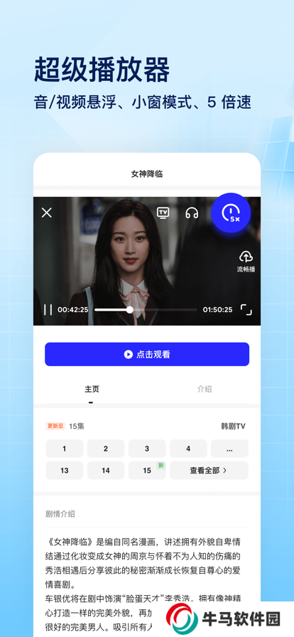 3、視頻播放器可進(jìn)行倍速調(diào)整、云收藏、快進(jìn)/退10秒等操,播放視頻更方便。