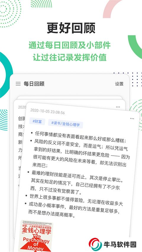 2、可以開啟每日回顧提醒功能,選擇一個(gè)時(shí)間集中來處理信息,對(duì)碎片簡單加工。