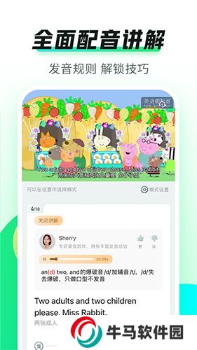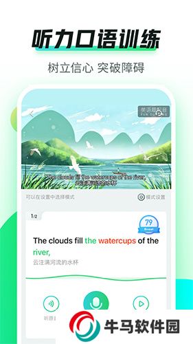 2、智能發(fā)音糾正,AI算法即時(shí)指出發(fā)音問(wèn)題,從而幫助你發(fā)音更準(zhǔn)確。