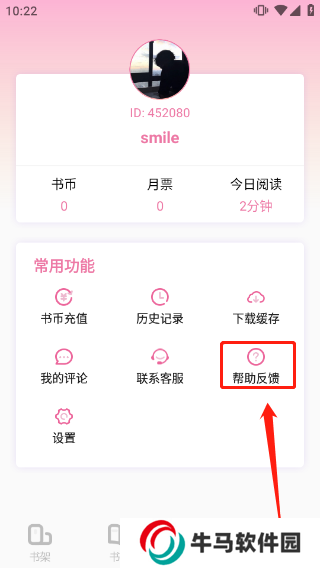3、登錄賬號后點擊“我的”-“幫助反饋”